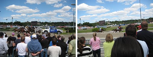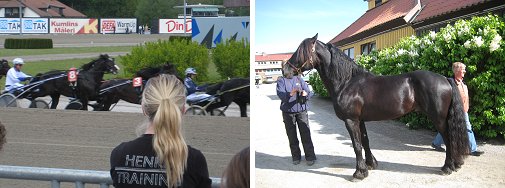 Of special interest was a trotting race for "Coldbloods" - a powerful, heavier breed with a smooth trotting gait. Coldblood racing is extremely popular in Scandanavia, with the fastest coldbloods racing in times of about 2:05 mile rate. In Norway, racing opportunities are divided almost equally between Standardbreds and Coldbloods. The 11 year old Coldblood star Moe Odin, winner of more than SEK 10,000,000 lifetime, participated in the race along with his son, Moe Brage. Moe Odin finished second in his race.