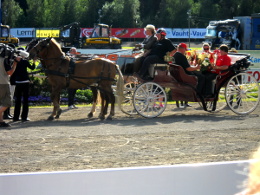 We traveled to the town of Mikkeli to watch the Kunikuusravit, the championship races for Finnish Coldblood trotters. Thirty thousand spectators of all ages gathered at the racecourse in the birch forest at the edge of town. Race day was truly a family event. Young women monte riders brought their own fan clubs. My friends had a special interest in the accomplished race mare She Loves You (Love You - S J's Shad Roe) that finished second in her race that afternoon. Prominent political figures milled around the VIP area between the races, which were also broadcast on television.