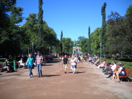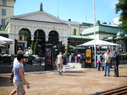 The Esplanade is a wide downtown boulevard with shopping, restaurants, and a central park. In the park, the Café Kappeli is a great place to have a drink and a pastry on a sunny summer afternoon. The waterfront is just off the Esplanade, with cruise ships, open air vendors for Finnish handicrafts and fresh fruit, and best of all outdoor restaurants serving dinners of grilled fresh salmon and vegetables by the edge of the water. A grilled salmon dinner on my final day in Finland was an experience to remember.