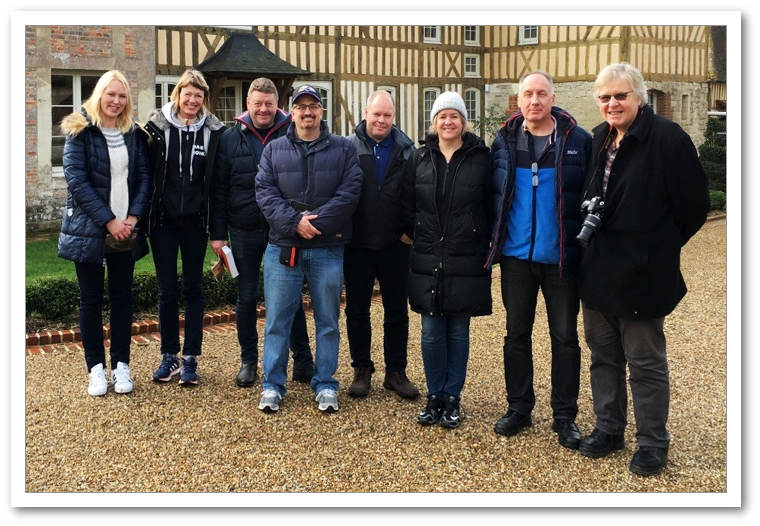 From left to right in the photo above, our travel group included Ragnhild Diesen, Siv Marie Kittelsen, Nils Bergslien, myself, Erik Samuelsen, Dr. Hanne Lynne, Tore Borgersen and Per Erik Hagen. Per Erik was our knowledgeable tour organizer and guide, resident gourmet, and wine authority. Erik was our capable driver and hotel expert. Nils kept everyone's glasses filled with champagne as we motored around Normandy.