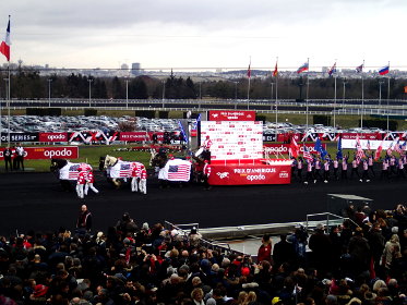 Finally Bold Eagle was escorted to the Winner's area by a horse draped in the American flag. While other exciting races followed, none would come close to the Prix d'Amerique.